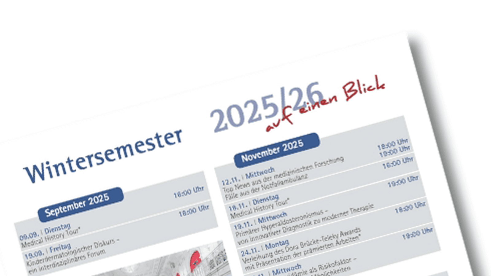 Das Programm ist vielfältig mit spannenden Vorträgen aus unterschiedlichen Fachbereichen, einem Workshop für den medizinischen Nachwuchs, mehreren renommierten wissenschaftlichen Auszeichnungen sowie einem medizinhistorischen Symposium. Alle wissenschaftlichen Fortbildungen sind DFP-zertifiziert und bieten wertvolle Impulse für die berufliche Weiterentwicklung.